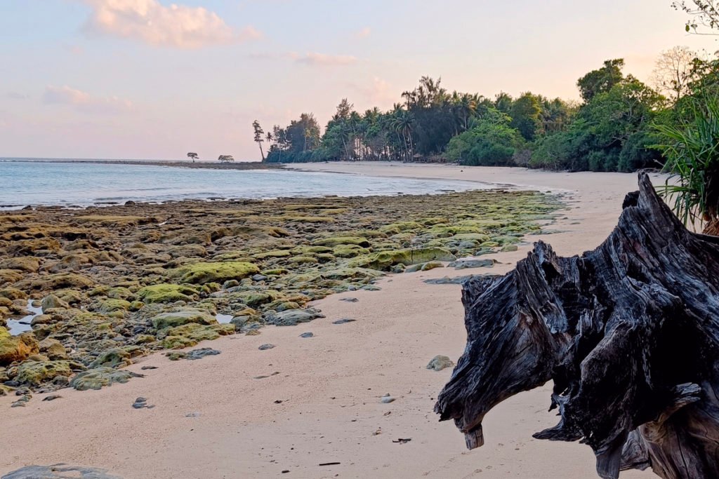 Merk Bay Beach on North Passage Island is a stunning tropical paradise nestled in the Andaman Islands. This secluded beach is renowned for its pristine white sands, crystal-clear turquoise waters, and lush surrounding greenery, making it an ideal destination for those seeking a serene escape from the everyday hustle. The gentle waves and shallow waters make Merk Bay Beach perfect for swimming and snorkeling, offering vibrant coral reefs and a variety of marine life just waiting to be explored.